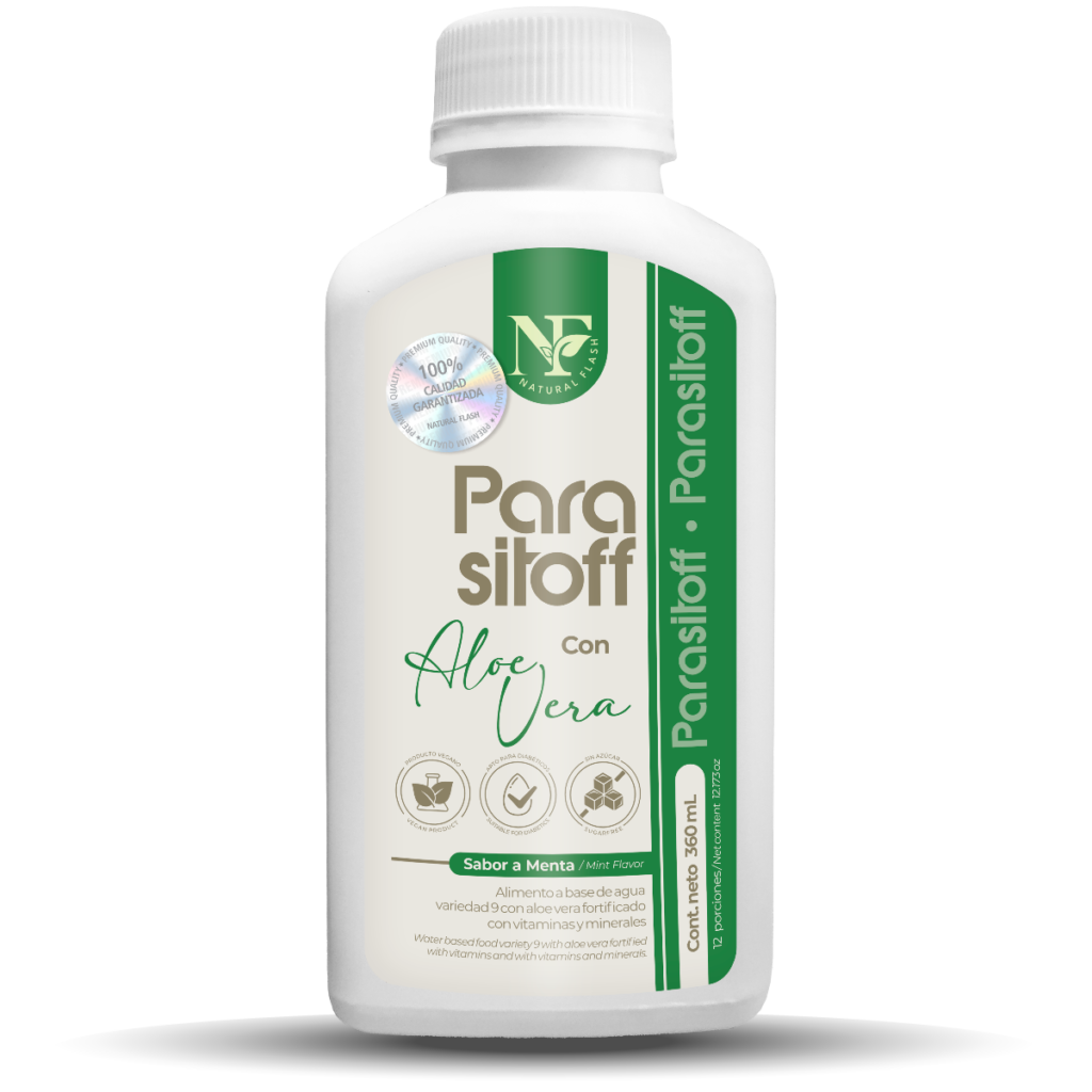 PARASITOFF es un suplemento nutricional elaborado con ingredientes naturales como aloe vera, manzanilla y hierbabuena, que apoyan el bienestar del sistema digestivo. Su fórmula contribuye a la limpieza digestiva natural, ayudando a aliviar la inflamación abdominal, los gases y las molestias intestinales, promoviendo una digestión más cómoda y equilibrada.